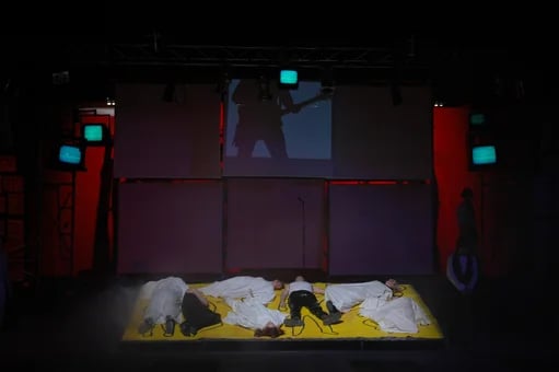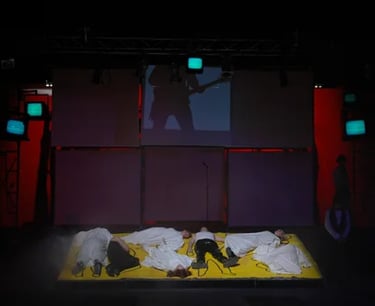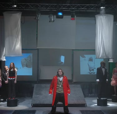 A Deconstruction often denies the plot, which is an odd notion since Aristotle tells us that plot is the most important of the six elements of drama (plot, character, theme, diction, music, and spectacle). And yet, it is the hallmark of many postmodern theater events. In an attempt to challenge how a tragic narrative works, we have chosen to employ an ironic narrative (which may at times be mistaken for comedy in this context) to tell the story. This allows us to spotlight the excesses of the play so strongly that things which previously seemed regal now appear absurd. In the final wash, we are telling this story through theme instead of a grand plot. What elements of plot are found in LEAR ReLoaded are recursive and ironic, often not related in action to the original play.