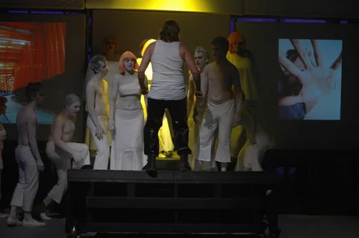 In the spring of 2007, Gardner-Webb University Theater mounted a daring postmodern deconstruction of Shakespeare’s play King Lear entitled LEAR ReLoaded, written and directed by Scot Lahaie.