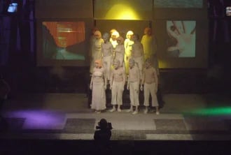 In our production of LEAR ReLoaded, a deconstruction of Shakespeare’s play King Lear, we have chosen to play up the original medieval mindset of the play, which has often been overlooked in contemporary productions of Shakespeare’s original work. We have done this by emphasizing the dualities of cursing/blessing and spirit/material. This has brought a strong Christian worldview into focus, which has been very rewarding for us as Christian artists.